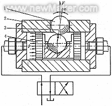 1.鋼球 2.液壓缸體 3.力作用線 4.活塞